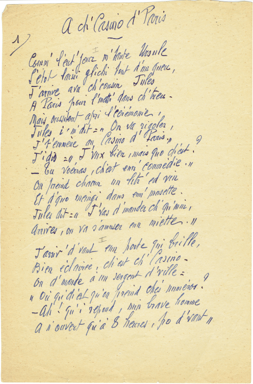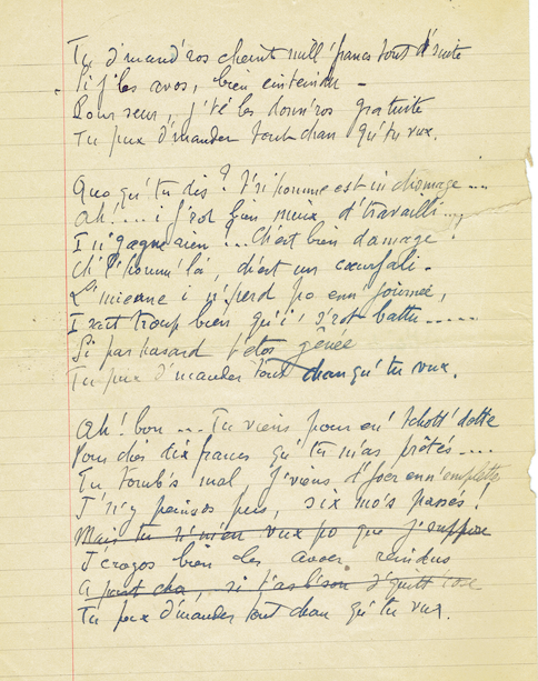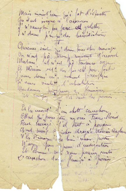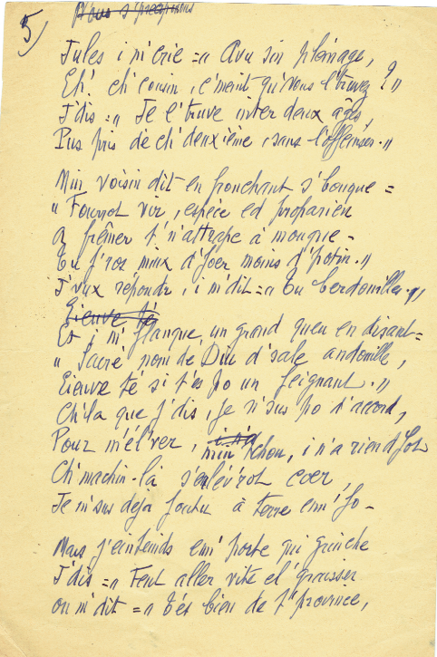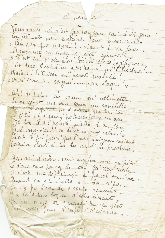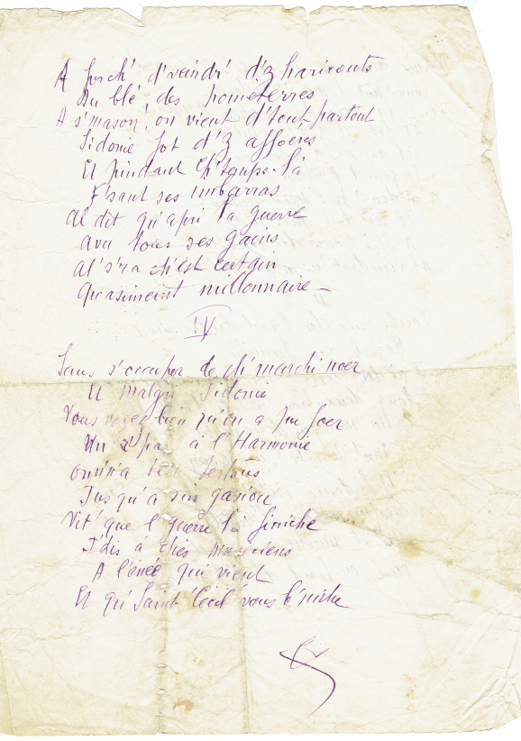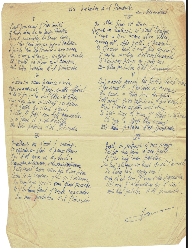 De nature curieuse, il note les bons mots, les expressions ou répliques typées qu’il entend au hasard de ses visites. Son imagination le porte à replacer cet esprit picard dans des dialogues théâtraux, mais aussi dans des contes, des poèmes, des chansons. Nous y retrouvons régulièrement ses héros, Dudule (le mari) et Sidonie (sa femme) dans leur intérieur picard. Une grande cheminée avec son fauteuil, une table qui trône au centre de la pièce, et une horloge qui décompte les heures : le décor ne change presque jamais. Les idées foisonnent dans ce recueil.