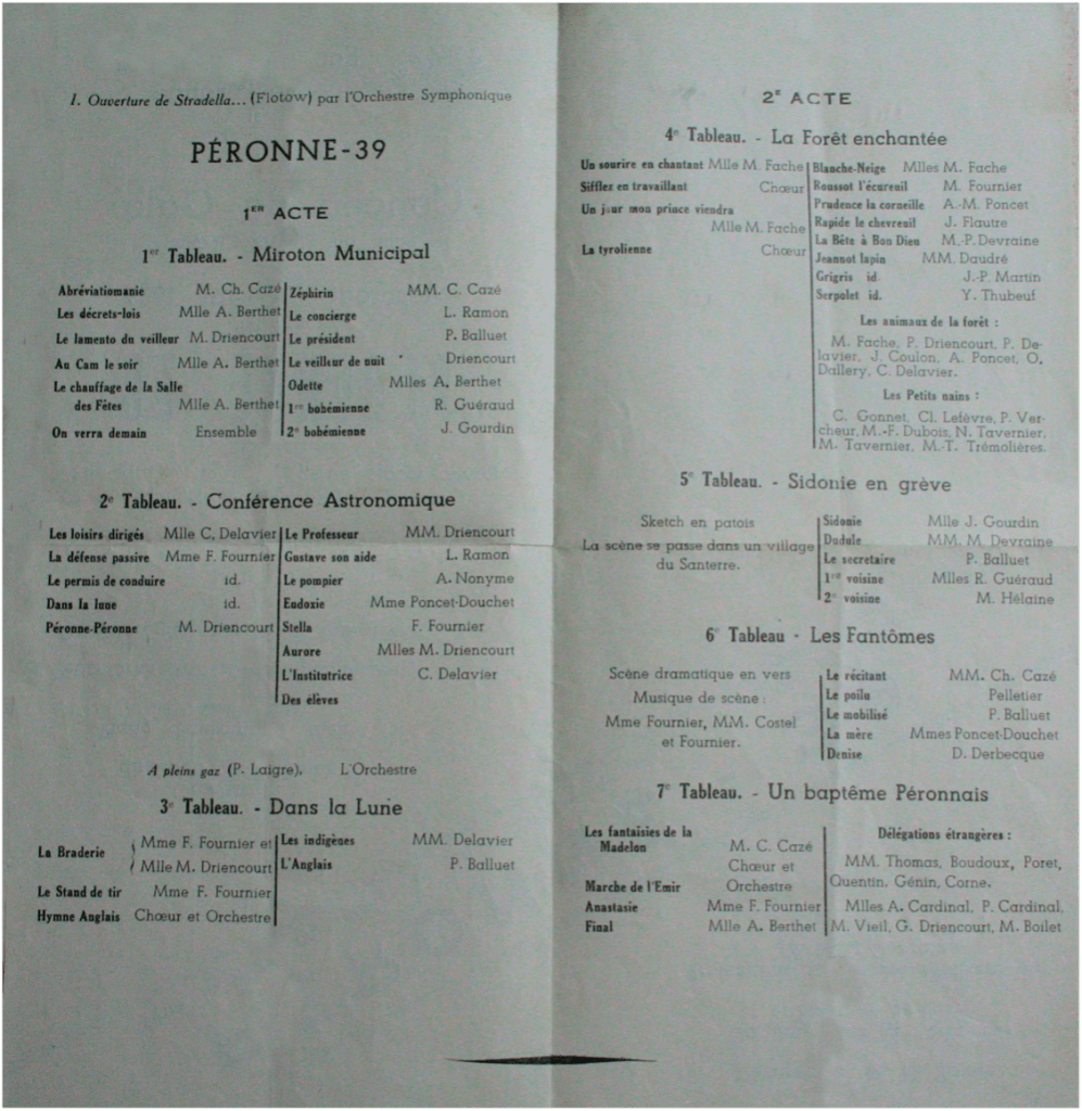 La Gazette de Péronne, le Progrès de la Somme de l’époque sont dithyrambiques sur cette revue qui rencontra un très vif succès et fit l’objet d’une deuxième représentation le 31 mai 1939.