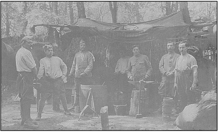 Les vétérinaires qui officient au sein de la troupe se partagent entre les différents régiments et parcourent parfois de longues distances pour surveiller le bon état des chevaux, leurs conditions de vie, qualité du rationnement et de l’abreuvement. Ils sont responsables de la Maréchalerie et doivent concilier les impératifs militaires et la nécessité de garder en bonne condition les chevaux quelle que soit la situation.