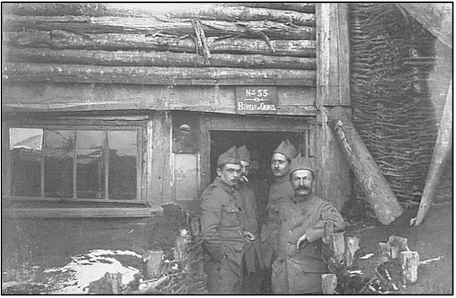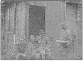 | 22 décembre | Nous sommes toujours à Fère où je m’embête de plus en plus. Je n’ai plus de goût à rien ; j’ai écrit à Driencourt le 23 novembre par Lausanne, par Pontarlier-Bâle, par Maëstricht, par La Haye. Aucunes nouvelles. Il paraît que nous avons remporté une victoire importante en Alsace (?) Toujours à Fère en Tardenois une photo de Gustave Devraine avec les Lieutenants Marquet et Wambergue laisse entrevoir le mal-être de Gustave. |