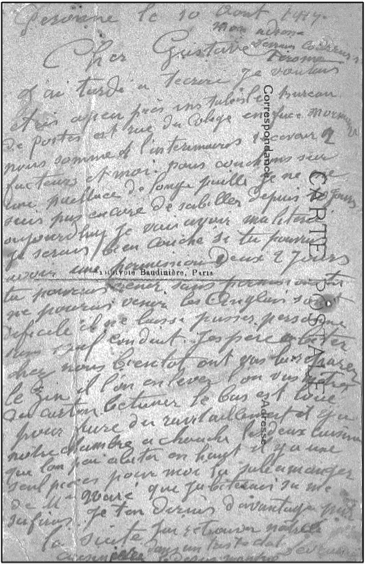 Je vous envoie aussi la nouvelle adresse à laquelle il faudra m’écrire quand j’aurai quitté Fère en Tardenois.