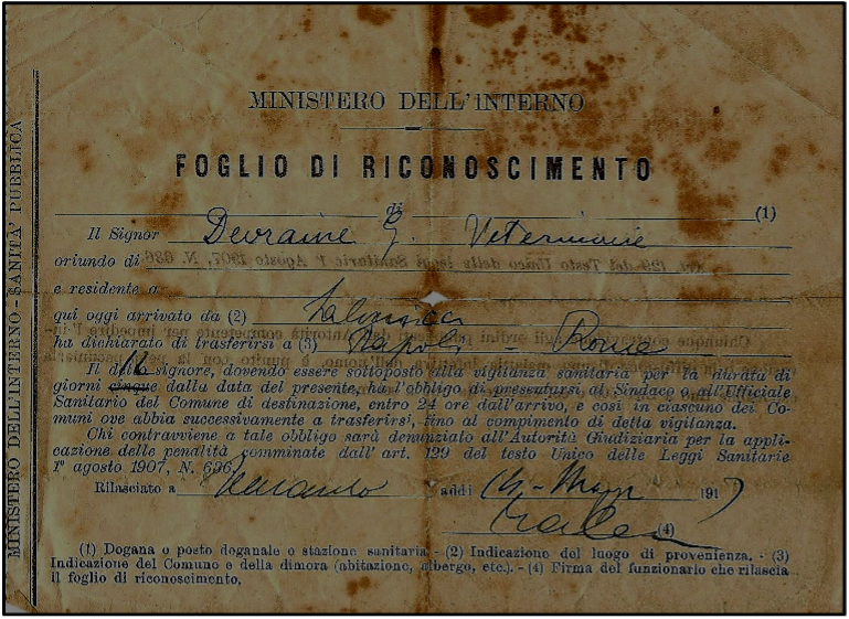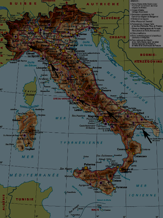 Le 11 mai escale à Corfou puis après avoir longé la côte albanaise arrivée à Tarente à la pointe sud de l’Italie le 14 mai 1917