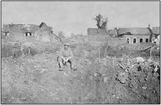 | 6 novembre : Oulchy la Ville – Fère en Tardenois | Nous repassons à la Vème armée. Départ à 8 heures, arrivée à 11 heures. Notre popote est installée chez Mr Meyer boulanger où je loge avec le lieutenant Wanbergue. Ville charmante où nous retrouvons tout le confort dont nous étions privés depuis plusieurs mois. Gustave Devraine nous a laissé quelques photos du lieutenant Wambergue qu’il semblait beaucoup apprécier. Le Lieutenant Wambergue passionné d’aviation demandera plus tard son détachement dans l’Aviation et se tuera au cours d’un exercice pour former de jeunes recrues. |