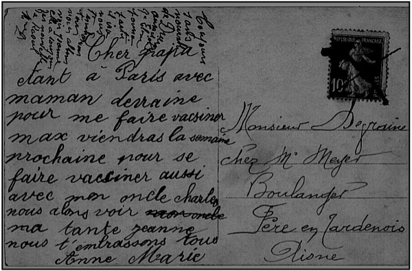 Ses vœux sont exaucés, sa fille Anne Marie lui écrit à Fère en Tardenois