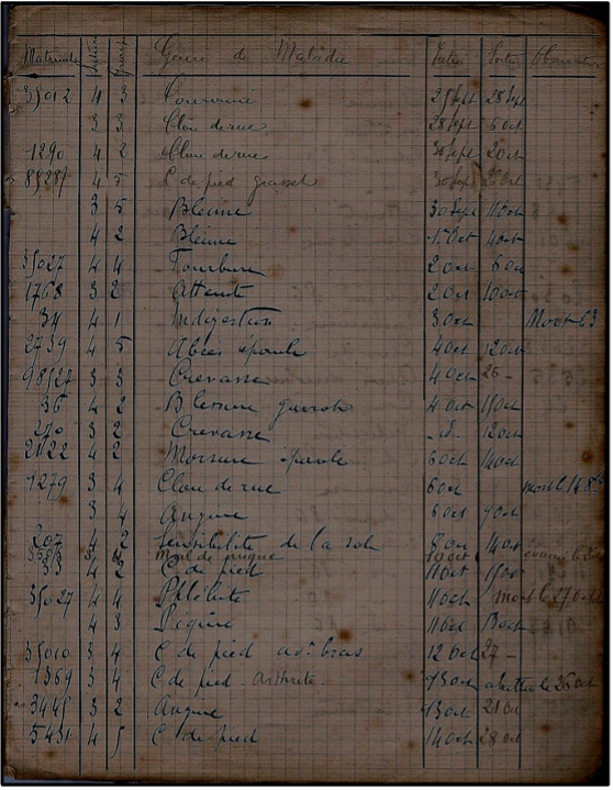 Pendant la campagne de 1914 les causes de morbidité et de mortalité ont été principalement dues au début de la guerre, au travail ininterrompu, à la longueur des étapes (nuit et jour) au rationnement et à l’abreuvement irrégulier des chevaux.