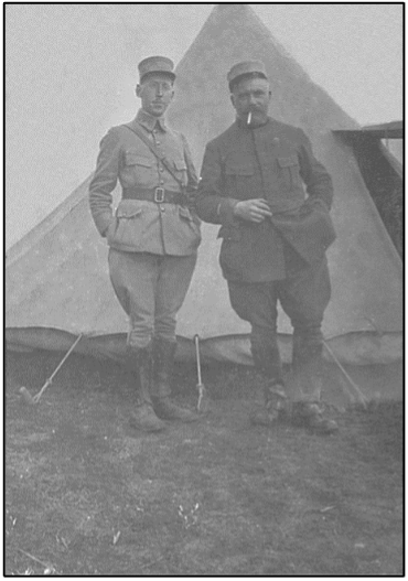 | 6 novembre : Oulchy la Ville – Fère en Tardenois | Nous repassons à la Vème armée. Départ à 8 heures, arrivée à 11 heures. Notre popote est installée chez Mr Meyer boulanger où je loge avec le lieutenant Wanbergue. Ville charmante où nous retrouvons tout le confort dont nous étions privés depuis plusieurs mois. Gustave Devraine nous a laissé quelques photos du lieutenant Wambergue qu’il semblait beaucoup apprécier. Le Lieutenant Wambergue passionné d’aviation demandera plus tard son détachement dans l’Aviation et se tuera au cours d’un exercice pour former de jeunes recrues. |