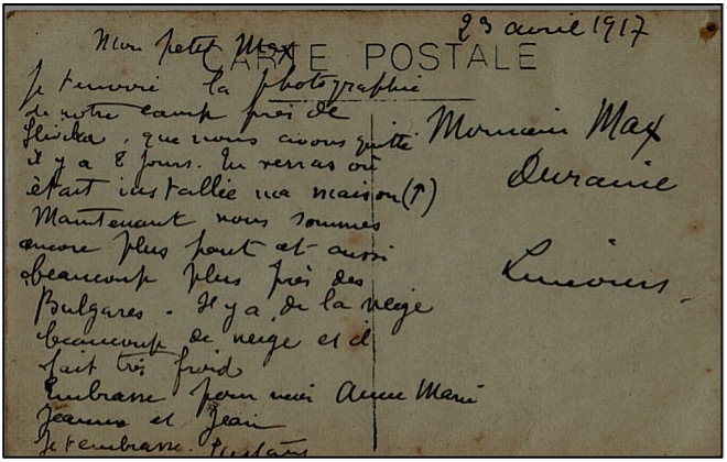 Départ de Thessalonique le 8 mai 1917, arrivée à l’île de Milos le 9 mai, passage à Navarin (Pylos) le 10 mai.