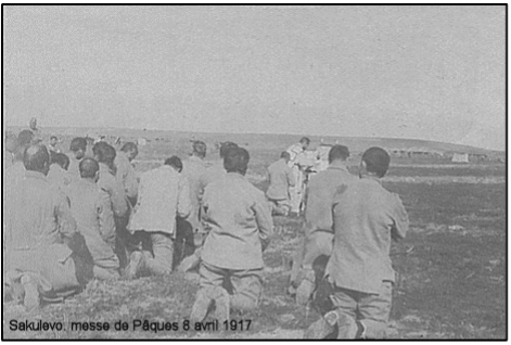 Dans l’Historique du 8ème Régiment d’Infanterie Coloniale pendant la Grande Guerre 1914-1919 édité en 1920 par l’Imprimerie Mouton & Combe, 2 rue de l’Ordonnance à Toulon [ii] nous apprenons qu’après la bataille de la Somme le régiment a été transporté au camp de La Valbonne près de Lyon, pour repos, instruction et réorganisation. Il rentre dans la composition de la 16ème Division d’Infanterie Coloniale destinée à l’Armée d’Orient.