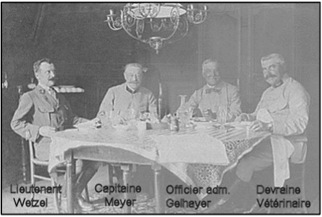 | juin 1916 | il est à Lizy/Ourcq avec le Capitaine Meyer, le Lieutenant Wetzel et l’Officier d’Administration Gelhayer. |