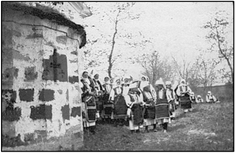 A quelques kilomètres de là en bordure de la forêt de Monceaux une photo prise à Germigny l’Évêque reste mystérieuse faute d’annotations sur les personnages.