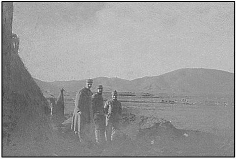 | 22 décembre | Nous sommes toujours à Fère où je m’embête de plus en plus. Je n’ai plus de goût à rien ; j’ai écrit à Driencourt le 23 novembre par Lausanne, par Pontarlier-Bâle, par Maëstricht, par La Haye. Aucunes nouvelles. Il paraît que nous avons remporté une victoire importante en Alsace (?) Toujours à Fère en Tardenois une photo de Gustave Devraine avec les Lieutenants Marquet et Wambergue laisse entrevoir le mal-être de Gustave. |